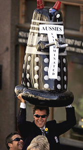 a flying (and inflatable) Dalek, as it announced "Aussies exterminated".